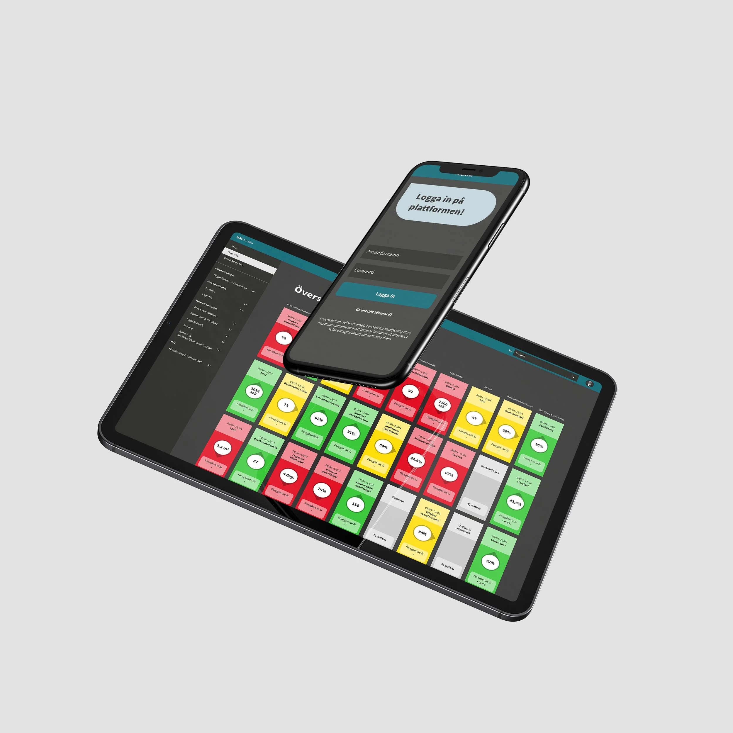 Based on performance indicators and real-time sales data, NAV By Mio supports managers in their daily work by simplifying follow-up processes, benchmarking, control, and business goal planning, among other things. We conducted in-depth interviews and creative workshops with the management team and store managers to create a new digital identity and a digital design system tailored to their needs and preferences.